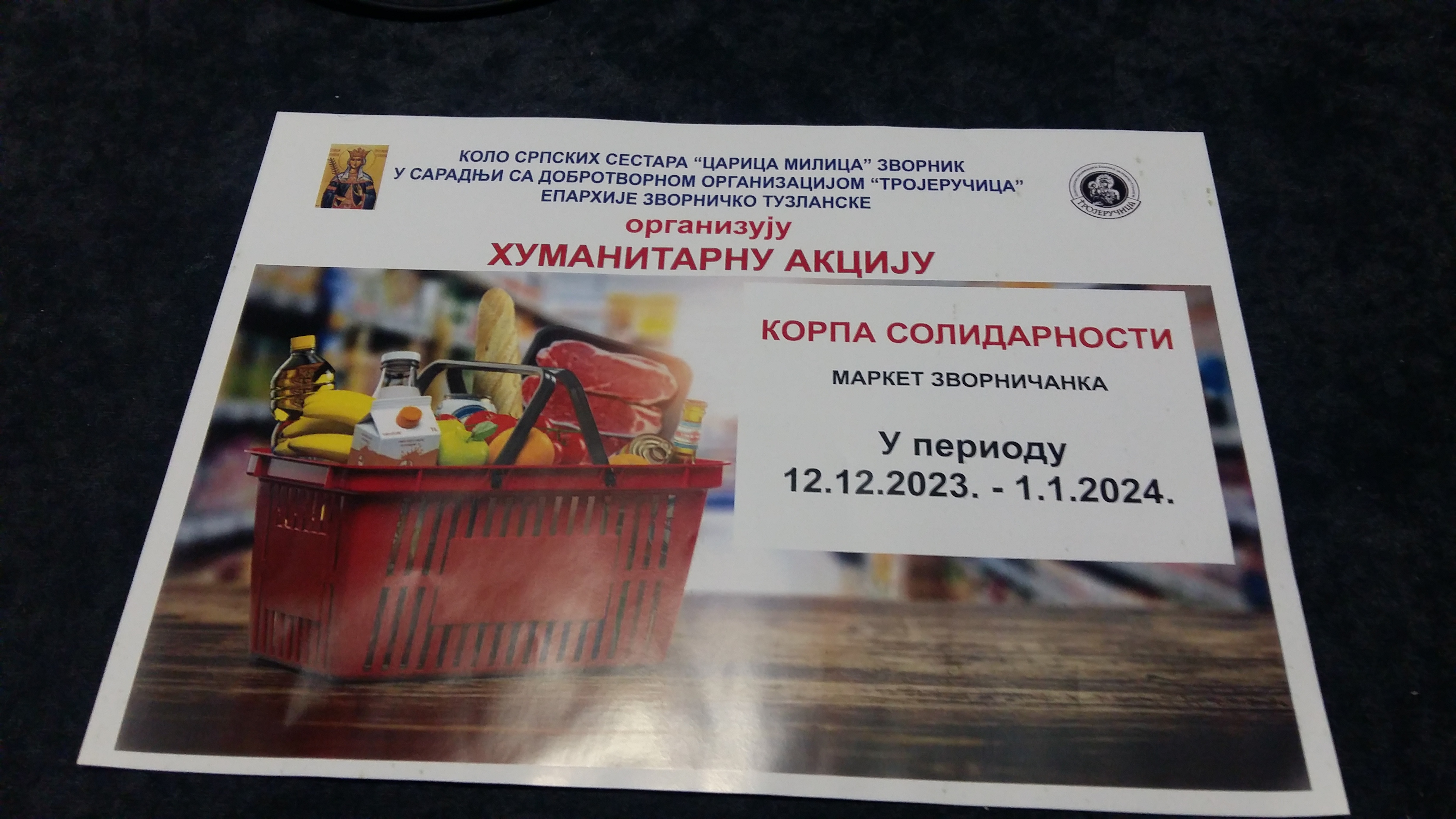 Kolo srpskih sestara “Carica Milica” Zvornik u saradnji sa dobrotvornom organizacijom “Trojeručica” Eparhije zvorničko tuzlanske, organizuje treću po redu humanitarnu akciju simboličnog naziva”Korpa solidarnosti”.