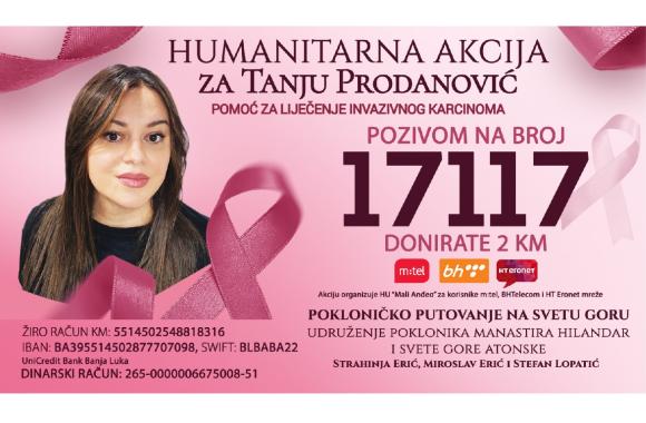 Pozivom na broj 17117 donirate 2 KM i direktno pomažete Tanji u njenoj borbi.Broj je dostupan korisnicima m:tela,BH Telecom i HT Eronet mreža.