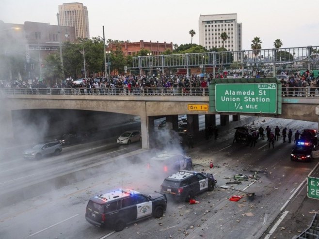 Sukobi između demonstranata i policije nastavljaju se u Los Anđelesu, a policija je koristila gumene metke kako bi rastjerala okupljene, nakon što su demonstranti počeli da na njih bacaju predmete.