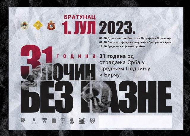 U okviru programa obilježavanja 31. godine od stradanja Srba u Srednjem Podrinju i Birču koje je ove godine planirano u subotu, 1. jula 2023. godine, u Bratuncu, organizatori obavještavaju da i ove godine u posjetu dolazi njegova svetost patrijarh srpski gospodin Porfirije.