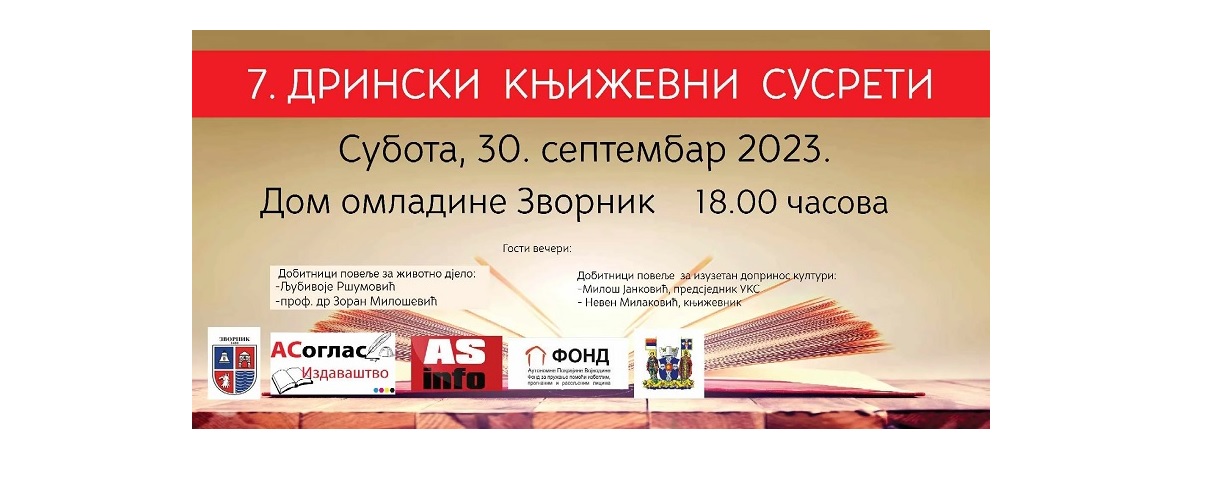 Drinski književni susreti, sedmi po redu, biće održani večeras u Domu omladine u Zvorniku.