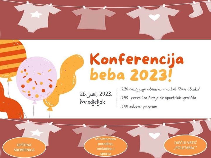 Iz Opštine Srebrenica pozivaju sve roditelji čije su bebe rođene od juna 2020. do juna 2023. godine da sa svojim bebama prisustvuju na ovogodišnjoj Konferenciji beba.