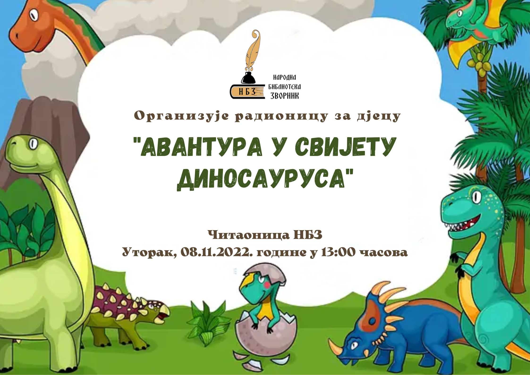 Narodna biblioteka Zvornik organizuje radionicu za djecu "Avantura u svijetu dinosaurusa".