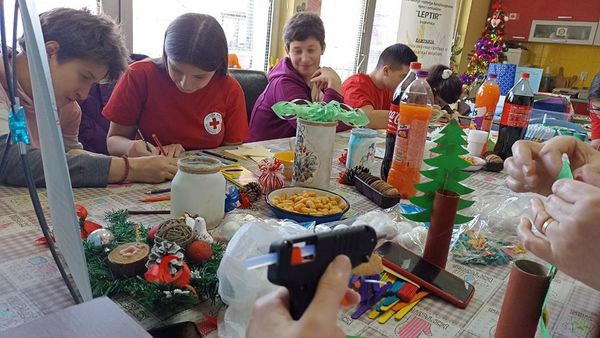 Na radionici su dugogodišnji prijatelji – volonteri iz Crvenog krsta Bratunac zajedno sa mladima izrađivali ukrase povodom predstojećih novogodišnjih i božićnih praznika, a radionici i druženju su prisustvovali i predstavnici Opštinske uprave Bratunac.